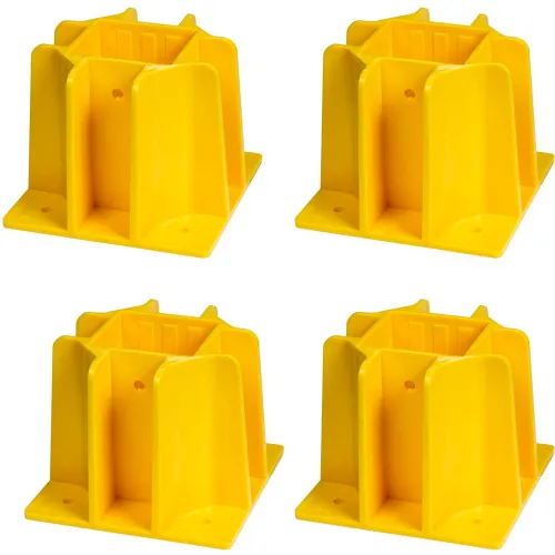 Tie Down Safety Guard Guardrail Base with Toeboard Slots, Yellow, Pack of 4