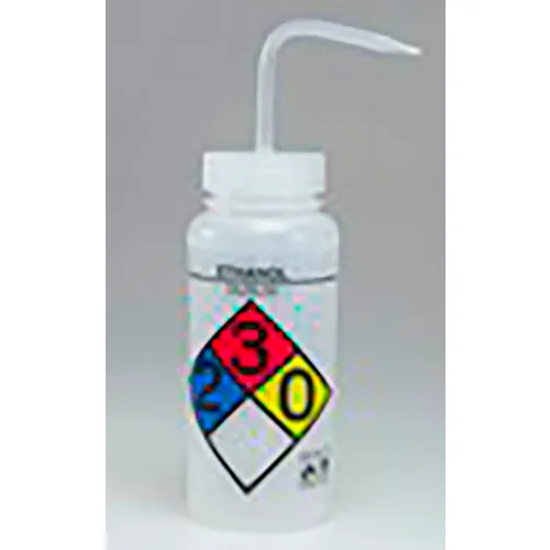 Bel-Art Safety-Labeled 4-Color Ethanol Wide-Mouth Wash Bottles, 500ml (16oz), PE w/Nat PP Cap, 4Pk