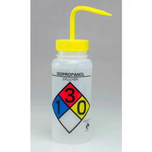 Bel-Art Safety-Labeled 4-Color Isopropanol WM Wash Bottles, 500ml (16oz), PE w/YLW PP Cap, 4Pk