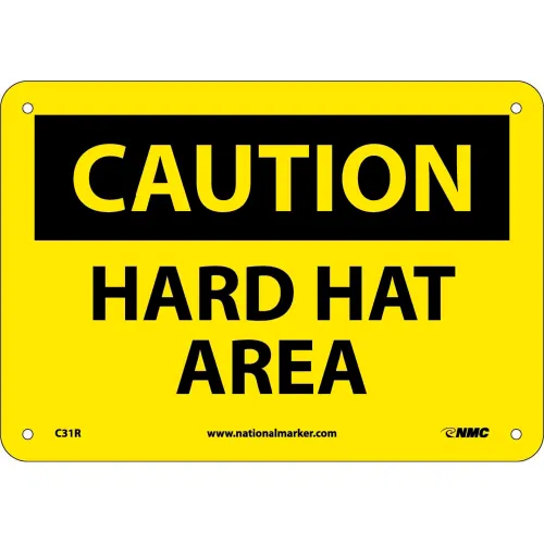 Safety Signs - Caution Hard Hat Area - Rigid Plastic 7"H X 10"W
