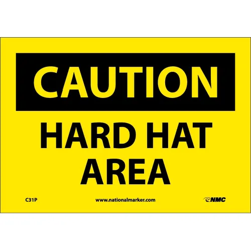 Safety Signs - Caution Hard Hat Area - Vinyl 7"H X 10"W