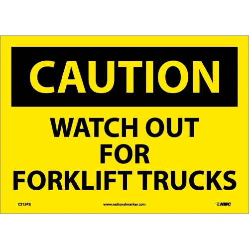 Safety Signs - Caution Watch Out Forklift Trucks - Vinyl 10"H X 14"W