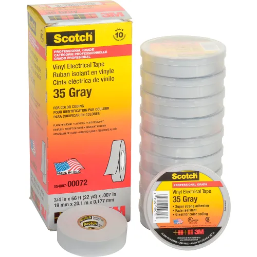 3m Scotch® Vinyl Electrical Color Coding Tape 35-Gray, 3/4" X 66' - Pkg Qty 10