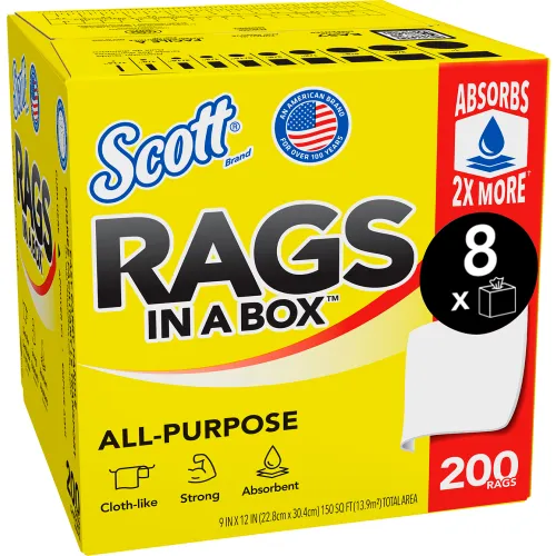 Scott® Rags In A Box, 10 x 12, White, 200/Box, 8 Boxes Per Carton - KCC 75260