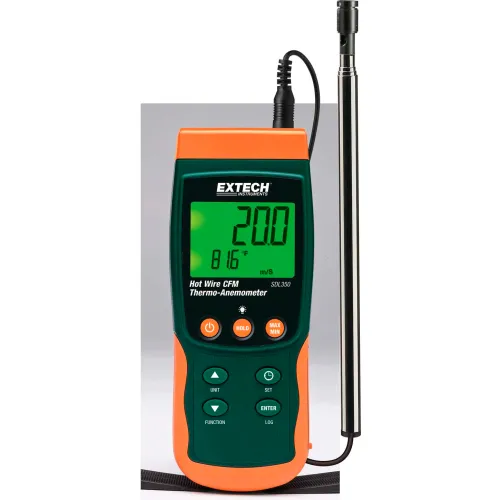 Extech SDL350 Hot Wire CFM Thermo-Anemometer/Datalogger, Green/Orange, Probe Sensor, 7.2"L