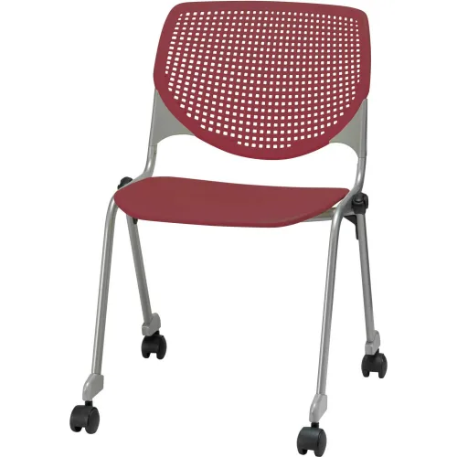 KFI Stack Chair with Casters and Perforated Back - Plastic Seat - Burgundy - KOOL Series