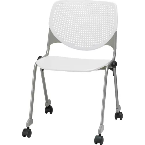 KFI Stack Chair with Casters and Perforated Back - Plastic Seat - White - KOOL Series