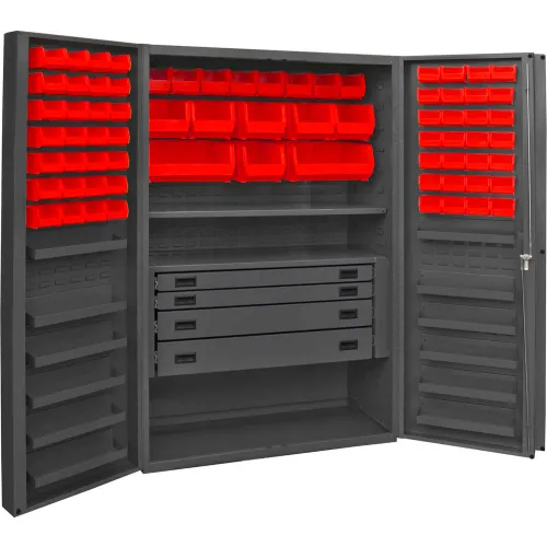 Durham Heavy Duty Work Bin Cabinet DCBDLP724RDR Deep Pocket Doors - 4 Drawers 72 Red Bins 48x24x78