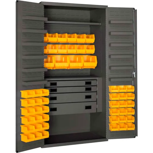 Durham Heavy Duty Work Bin Cabinet 3501524RDR - Flush Doors - 4 Drawers 52 Yellow Bins 36 x 24 x 72