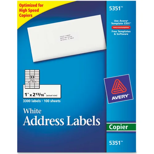 Avery® Self-Adhesive Address Labels for Copiers, 1 x 2-13/16, White, 3300/Box