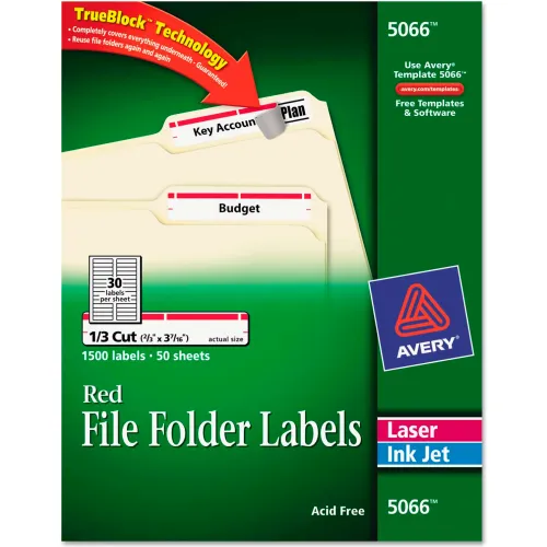 Avery® Self-Adhesive Laser/Inkjet File Folder Labels, White, Red Border, 1500/Box