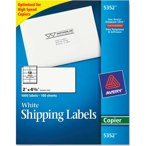 Avery® Self-Adhesive Shipping Labels for Copiers, 2 x 4-1/4, White, 1000/Box