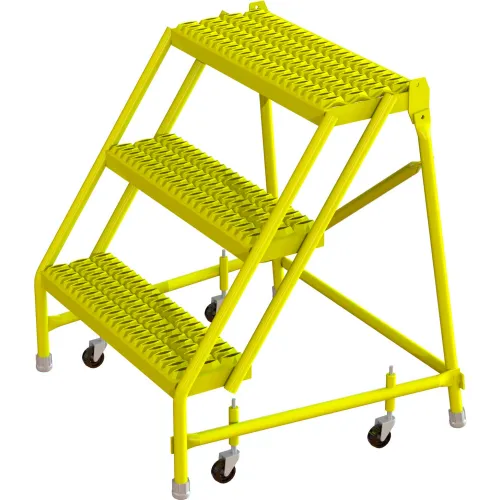 Tri Arc Serrated 24"W 3 Step Steel Rolling Ladder, 10"D Top Step - KDSR003242-Y