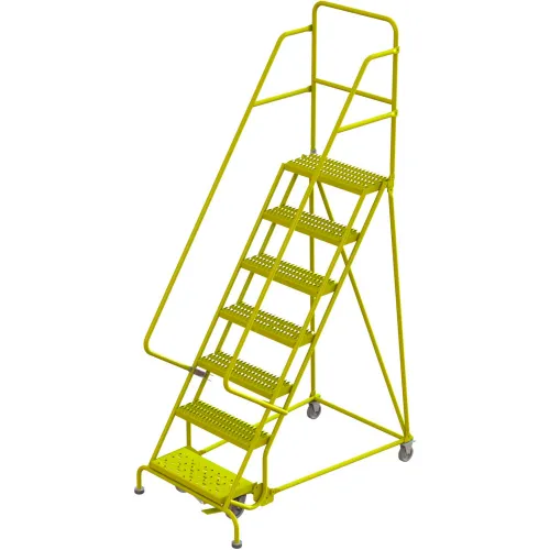 Tri Arc Serrated 24"W 7 Step Steel Rolling Ladder, 10"D Top Step - KDSR107242-Y