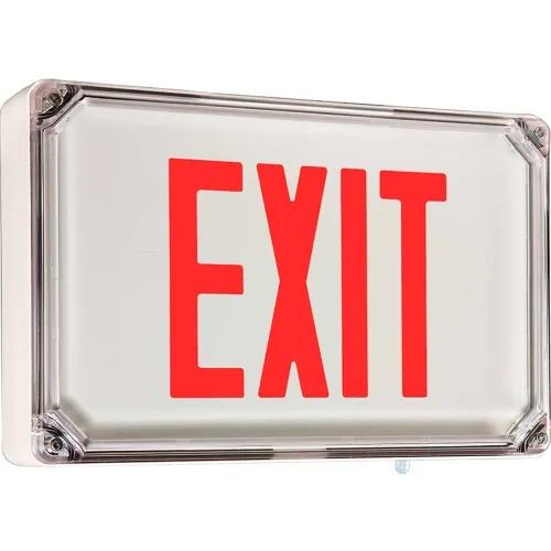 Hubbell Die Cast Alum. Wet Listed Emer. Exit, White w/ Red Letters, Single Face, w/Battery