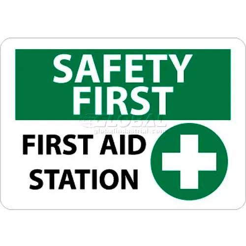 NMC SF161RB OSHA Sign, Safety First - First Aid Station, 10" X 14", White/Green/Black