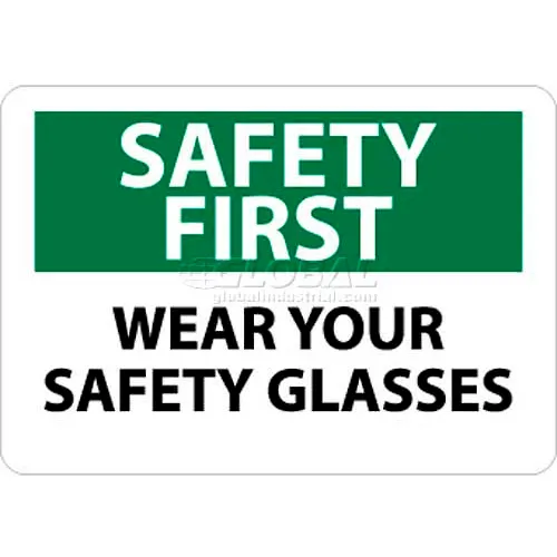 NMC SF39RB OSHA Sign, Safety First - Wear Your Safety Glasses, 10" X 14", White/Green/Black