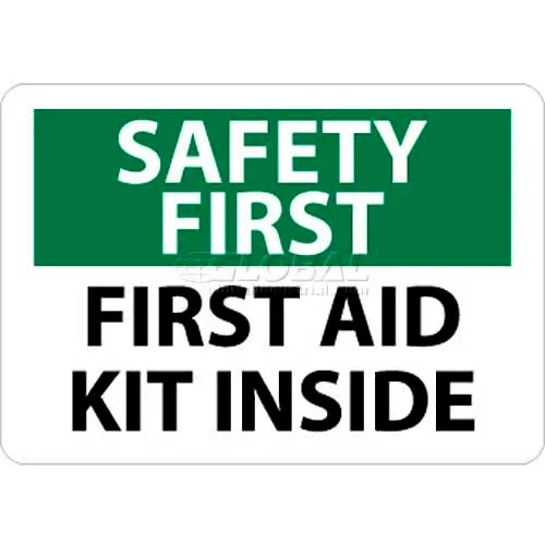 NMC SF47R OSHA Sign, Safety First - First Aid Kit Inside, 7" X 10", White/Green/Black