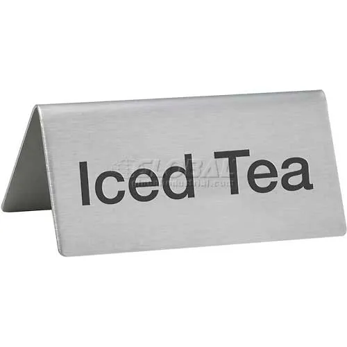 Winco SGN-105 Tent Sign, Iced Tea, 3"L, 1-1/2"H, Stainless Steel - Pkg Qty 12
