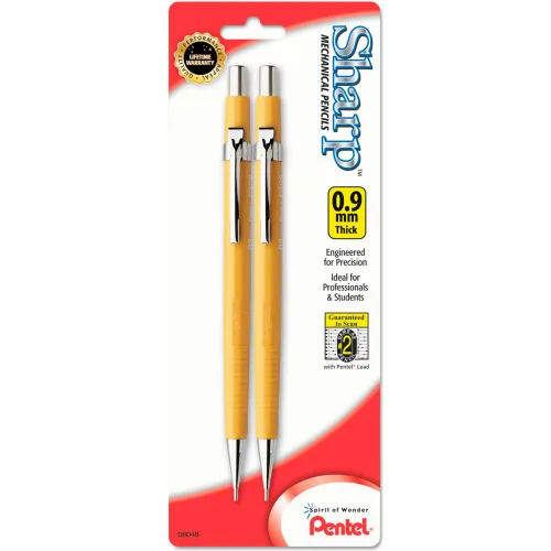 Pentel® Sharp Mechanical Pencil, 0.9 mm, HB (#2.5), Black Lead, Yellow Barrel, 2/Pack