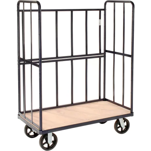 Global Industrial 3 Sided Steel Truck, 2 Shelves, 1240 lb. Capacity, 48"L x 24"W x 64"H