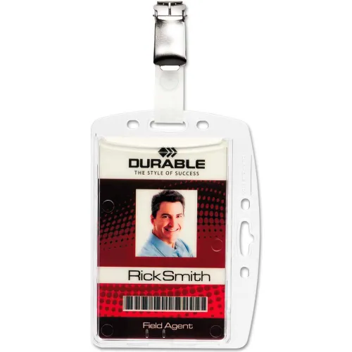 Durable® Shell-Style ID Card Holder, Vertical/Horizontal, With Clip, Clear, 25/Pack