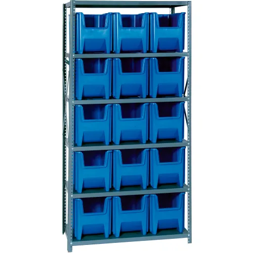 Quantum QSBU-600 Shelving With 15 Giant Hopper Bins Blue, 36x18x75