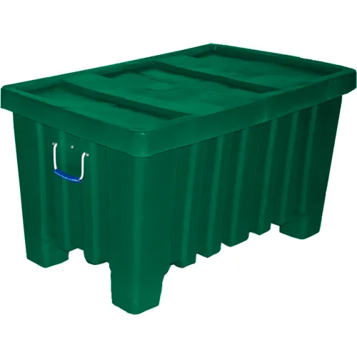 Forkliftable Plastic Bulk Shipping Container w/ Lid, 43"L x 26-1/2"W x 24"H, 550 lb. Capacity, Green