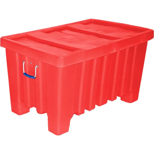 Forkliftable Plastic Bulk Shipping Container w/ Lid, 43"L x 26-1/2"W x 24"H, 550 lb. Capacity, Red