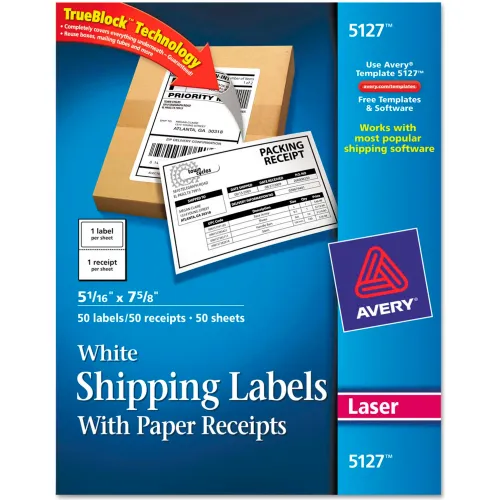 Avery® Shipping Labels with Paper Receipt, 5 1/16 x 7 5/8, White, 50/Pack
