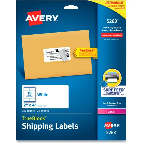 Avery® Shipping Labels with TrueBlock Technology, 2 x 4, White, Laser, 250/Pack