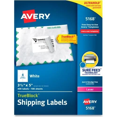 Avery® Shipping Labels with TrueBlock Technology, 3-1/2 x 5, White, 400/Box