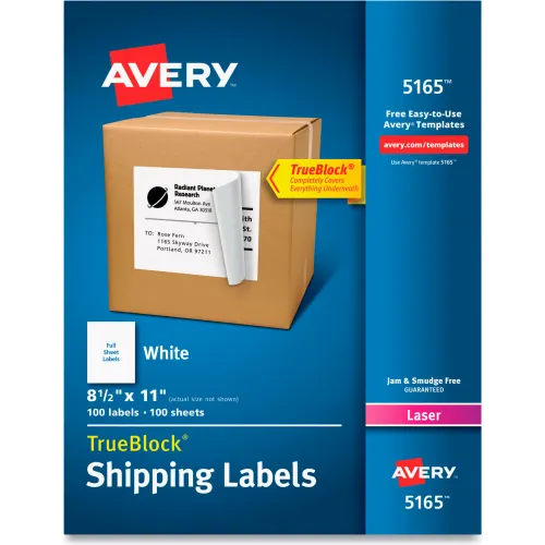 Avery® White Shipping Labels With TrueBlock Technology, 8-1/2" x 11"