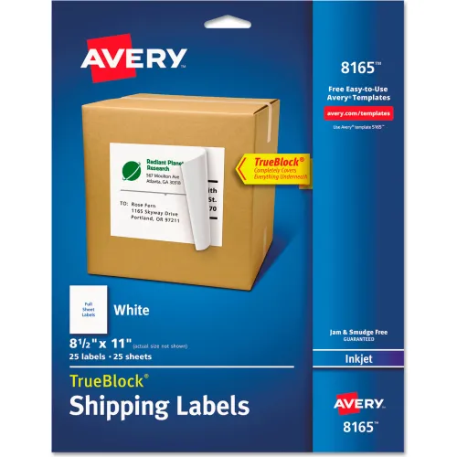 Avery® White Shipping Labels With TrueBlock Technology, 8-1/2" x 11", 25 Labels Per Pack