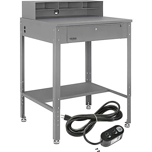 Global Industrial Flat Surfaced Shop Desk w/ Riser & Outlets, 34-1/2"W x 30"D, Gray