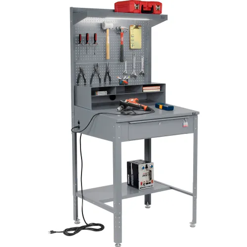 Global Industrial Sloped Shop Desk w/ Riser & Pegboard Panel, 34-1/2"W x 30"D, Gray