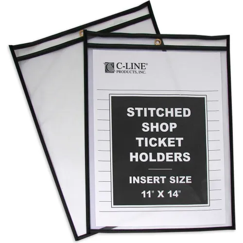 C-Line Products Shop Ticket Holders, Stitched, Both Sides Clear, 11 x 14, 25/BX