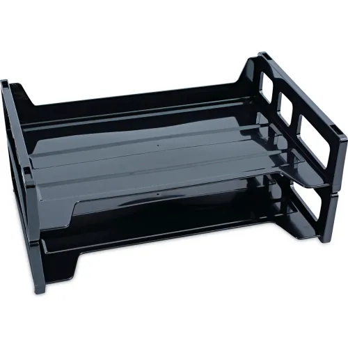 Universal® Recycled Plastic Side Load Desk Trays, 2 Sections, Letter Size Files, 13 x 9, Black
