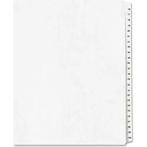 Avery Side Tab Collated Legal Index Divider, 76 to 100, 8.5"x11", 25 Tabs, White/White