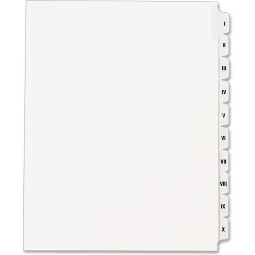 Avery Side Tab Index Divider, Printed I to X, 8.5"x11", 10 Tabs, White/White