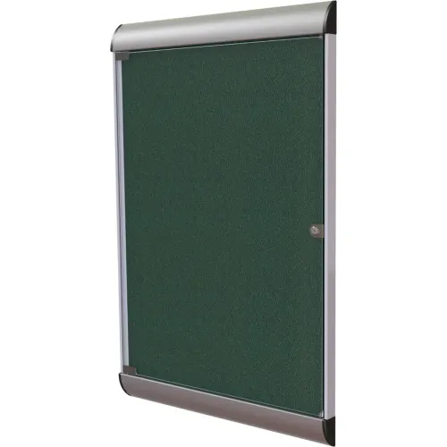 Ghent Silhouette Enclosed Bulletin Board, 1 Door, 28"W x 42"H, Ebony Vinyl/Silver Frame
