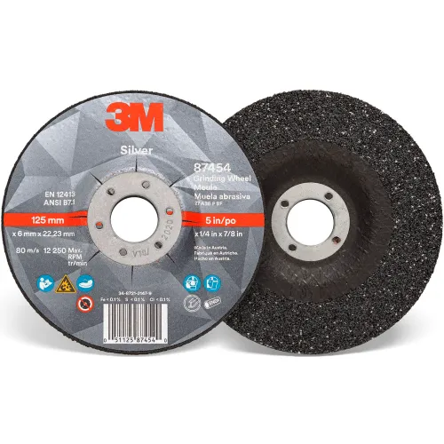3M™ Silver Depressed Center Grinding Wheel, 5" x 1/4" x 7/8" T27, Ceramic Grain, 36 Grit - Pkg Qty 20