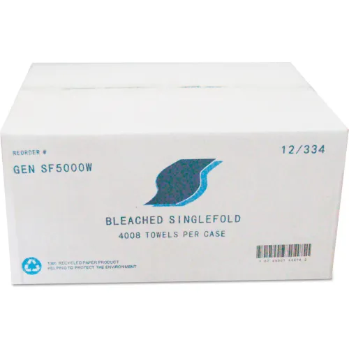 Single-Fold Paper Towels, 9" x 9.45", White, 334 Towels/Pack, 12 Packs/Case