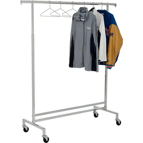 Single Hangrail Rolling Clothes Rack (K43) - Heavy Duty Square Tubing - Chrome