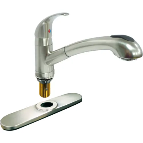 Dominion Faucets Single Lever Kitchen Faucet w/ Pull Out Spray, Removable Deck Plate, Satin Nickel