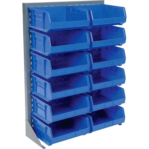Global Industrial Singled Sided Louvered Bin Rack 35 x 15 x 50 - 12 Blue Premium Stacking Bins