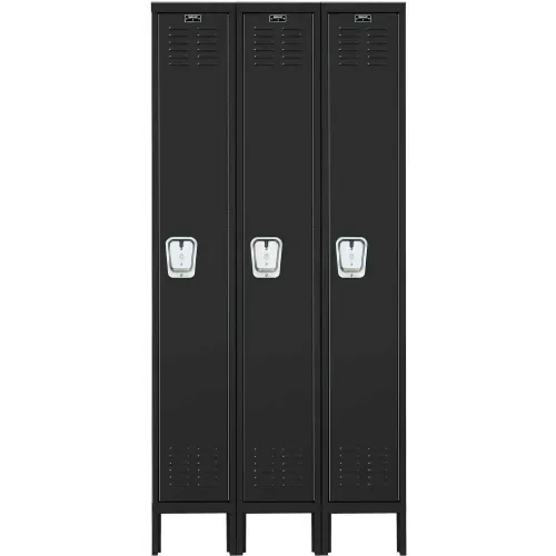 Hallowell® 1-Tier 3 Door Premium Locker, 36"W x 12"D x 78"H, Black, Unassembled