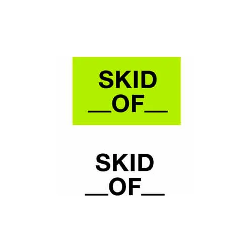 Paper Labels w/ "Skid Of" Print, 5"L x 3"W, Fluorescent Green & Black, Roll of 500