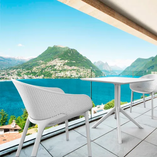Siesta Sky 3 Piece Outdoor Bistro Set, 31-1/2"W x 29-1/2"H Table, White