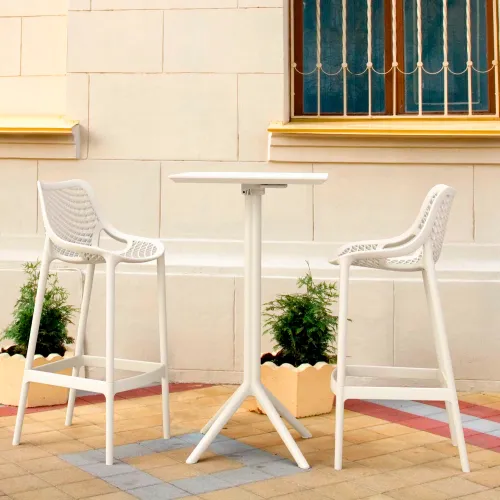 Siesta Sky Air 3 Piece Outdoor Bar Set, 23-5/8"W x 42-1/2"H Table, White